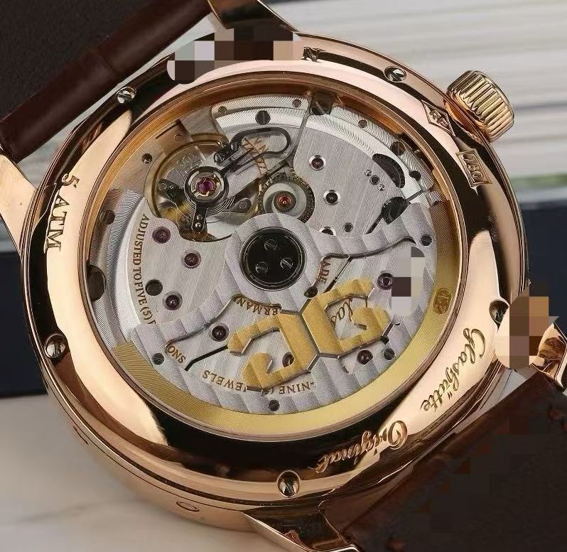 Case material: 18k rose gold.