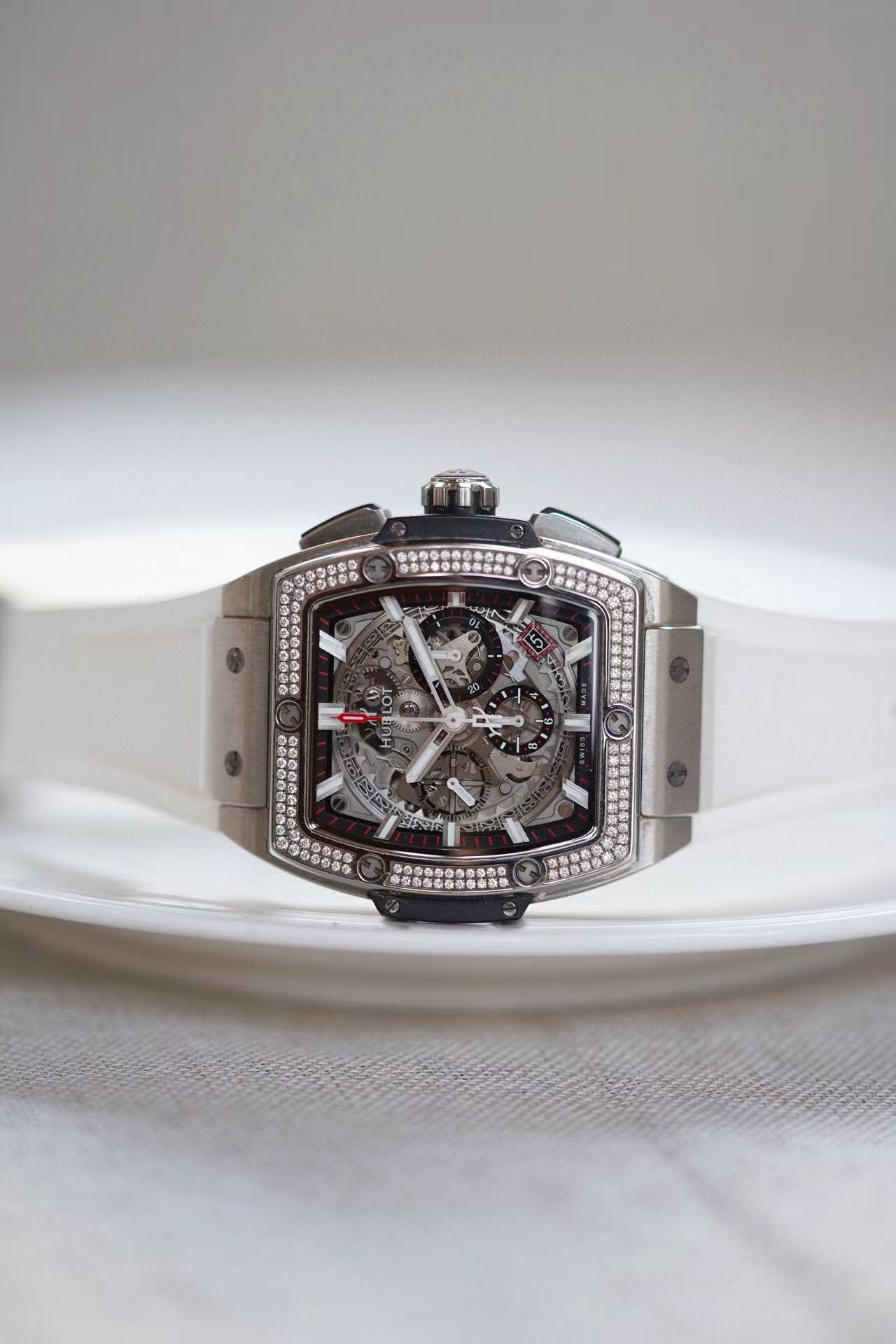 Case Material: Titanium set with 164 diamonds, weighing 0.90 carats