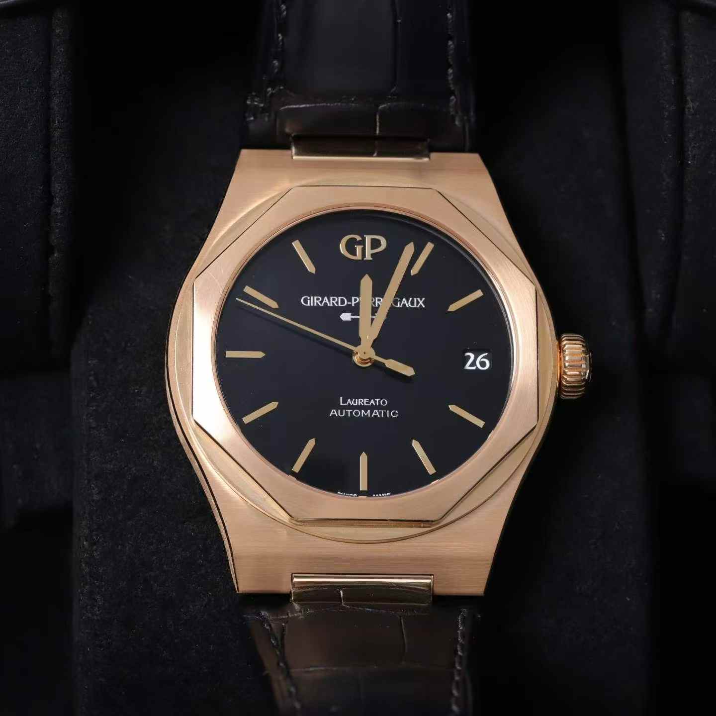 Case material: Rose gold.